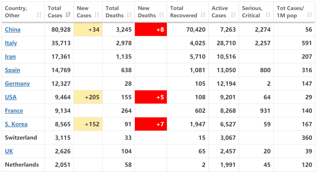 Up to now (19th Mar, 2020), Coronavirus has infected about 220000 people, nearly 9000 of whom have died.
